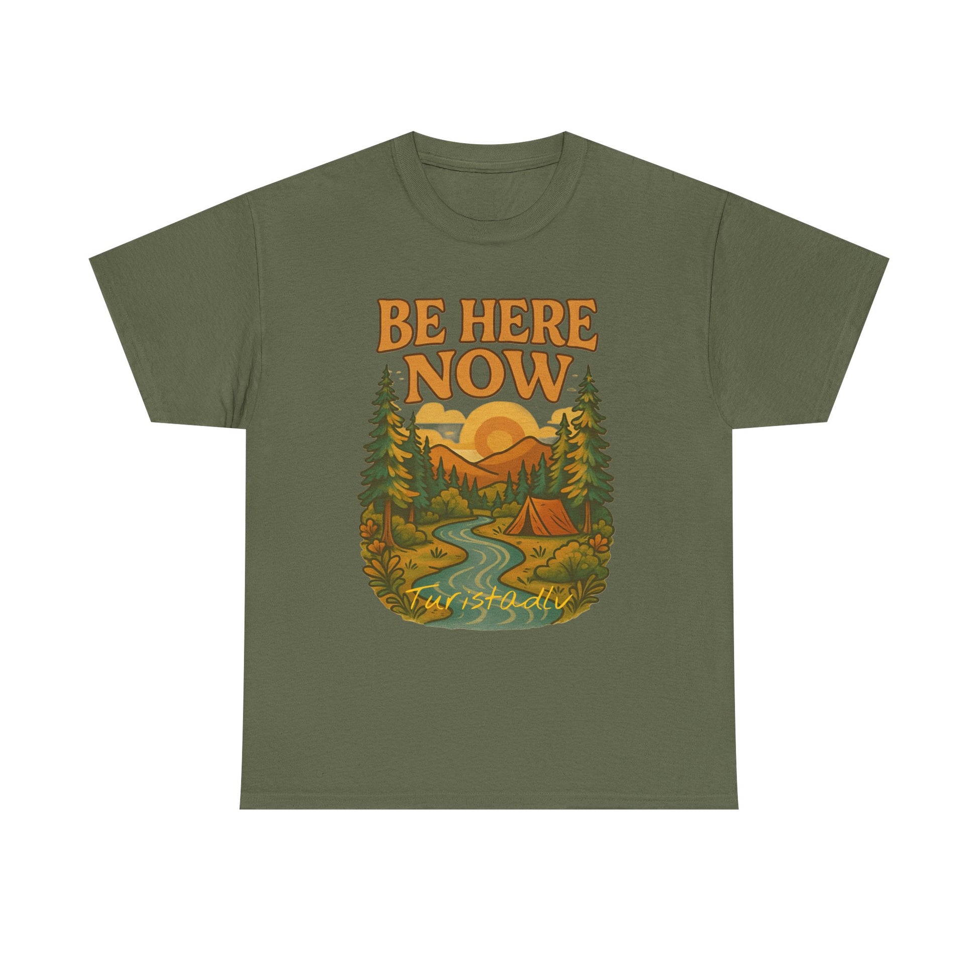 Camiseta con temática al aire libre para el aquí y ahora. Perfecto para un ambiente informal y relajado y se adapta perfectamente a cualquier aventura al aire libre u ocasión relajada. Relevante para los entusiastas del aire libre, los amantes de la naturaleza y aquellos que disfrutan de un armario cómodo y elegante. Ideal para salidas de verano, viajes de campamento, aventuras de senderismo y barbacoas en el patio trasero.