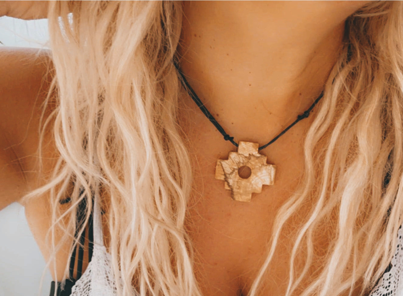 Collar de Chacana tallado en palo santo, madera sagrada usada para purificar y atraer buena energía. Amuleto de protección y conexión espiritual, hecho a mano con aroma natural. Ideal para rituales, meditación o como regalo con significado profundo.