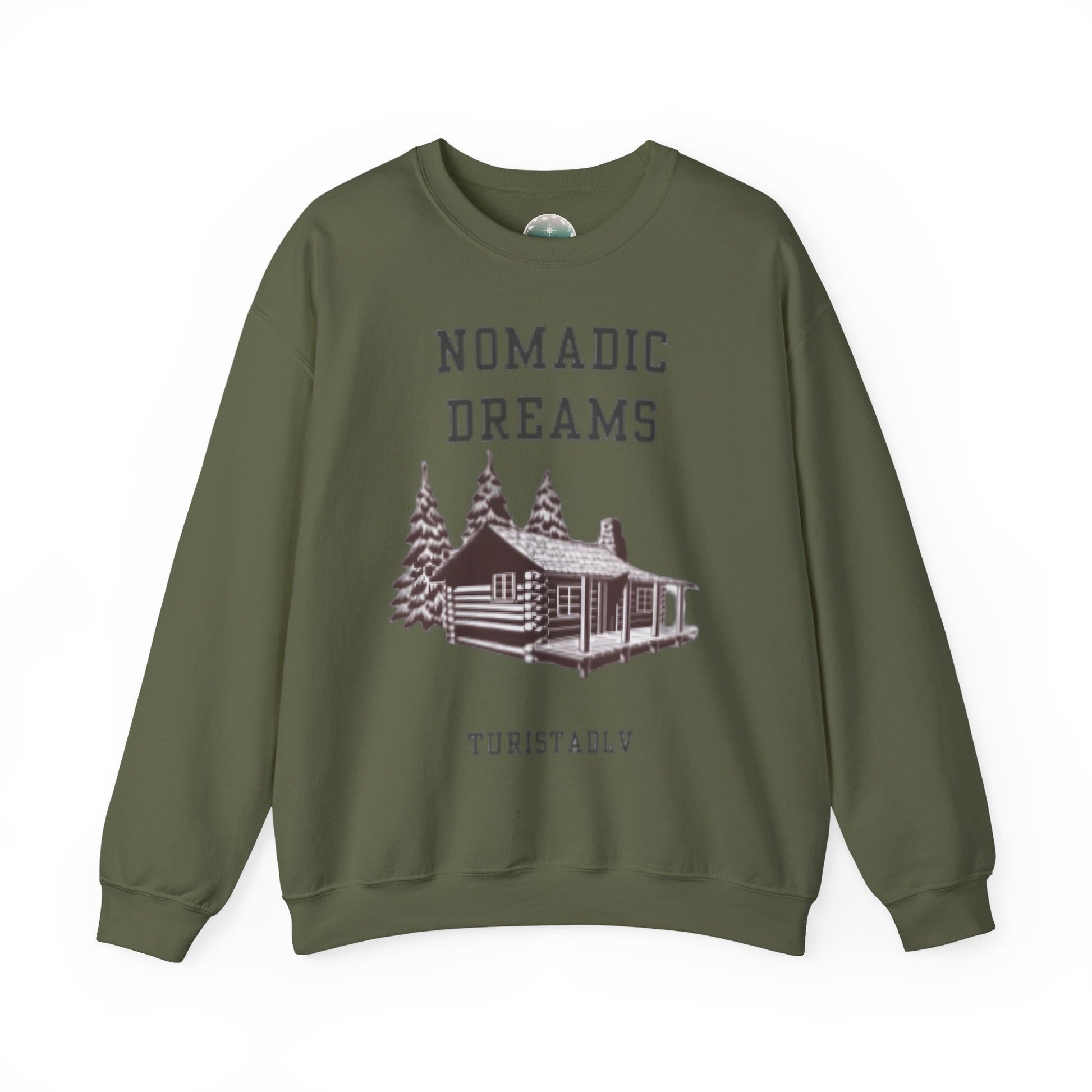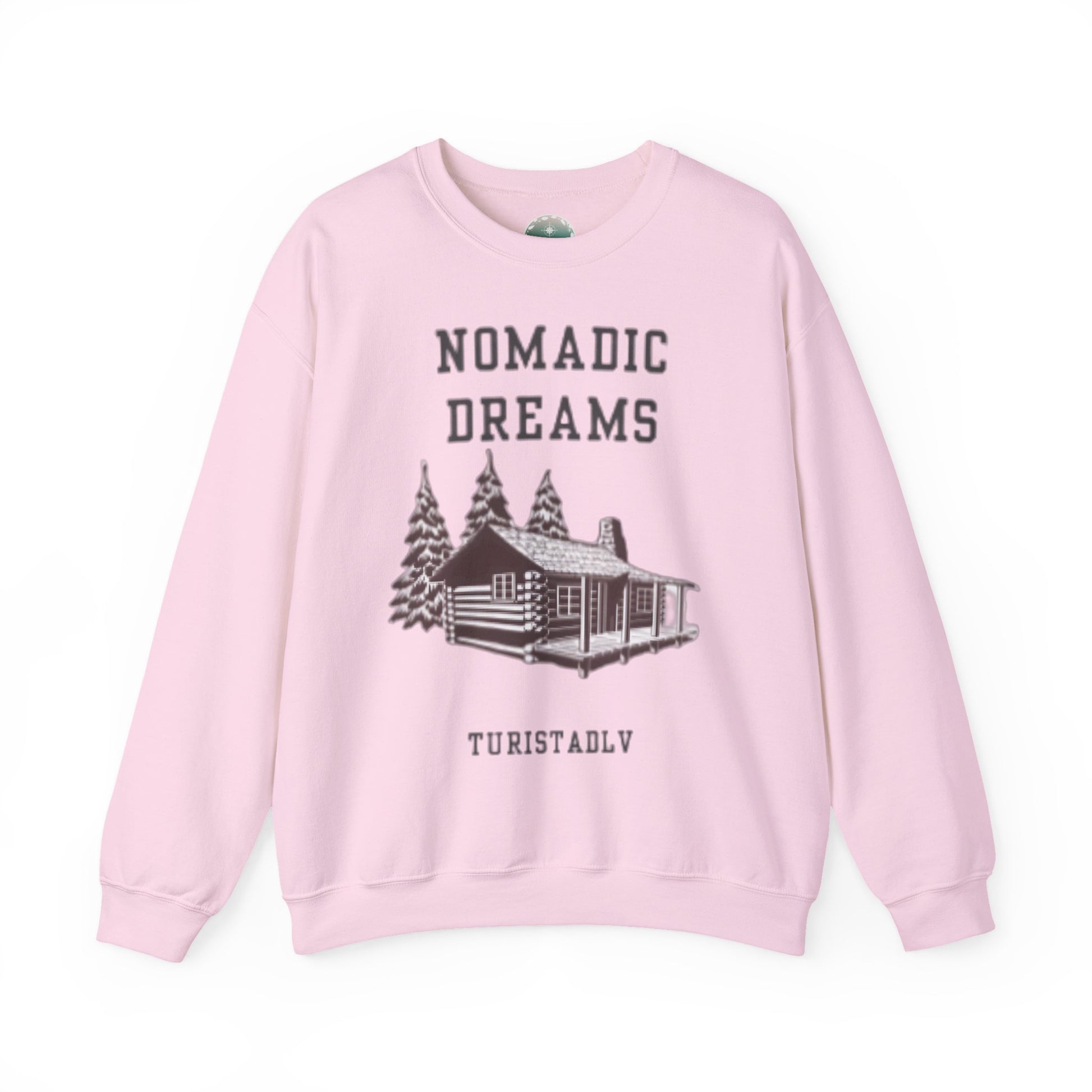 Sudadera acogedora sueños nómadas, suéter de cuello redondo unisex, perfecto para entusiastas del aire libre, regalo para viajeros, estilo casual para todas las estaciones.