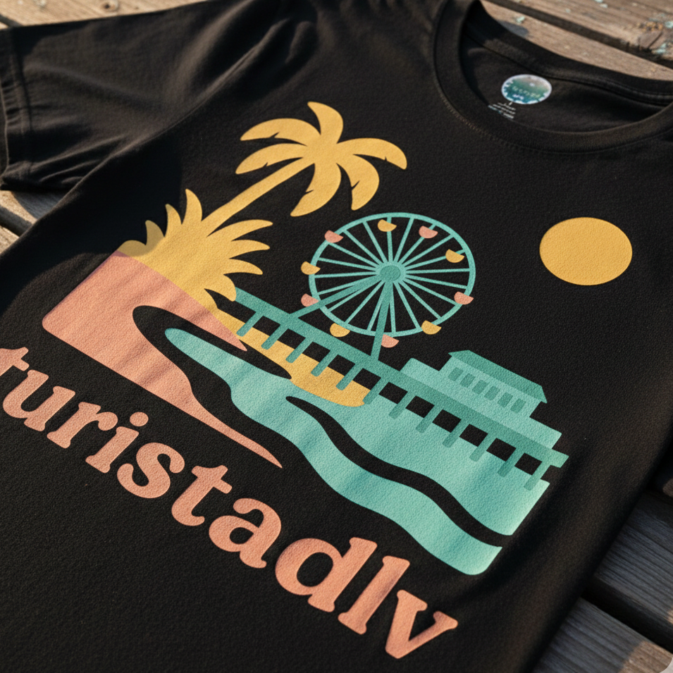 Sencilla, calentada por el sol y un poco nostálgica, esta camiseta del muelle de Santa Mónica lleva el ritmo lento de los paseos marítimos, las luces de la noria y la sal en tu piel. Cortinas de algodón ligeras fáciles sobre un traje de baño o jeans; las siluetas de palma y el diseño vintage de la noria se sienten como una instantánea de un viaje por carretera costero. Úselo en viajes de fin de semana por PCH, al anochecer en el muelle o mientras planea la próxima escapada: se sienta cómodamente en medio de la vida cotidiana, siempre listo para traer un toque de calor de California y calma junto al mar.